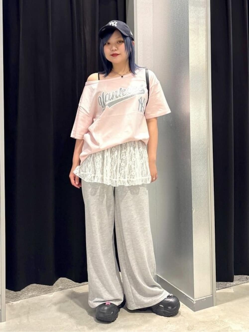 WEGO(WEGO STAFF)のTシャツ/カットソー「∴WEGO/グリッター ロゴ MLB別注オフショルビッグT」を使ったコーディネート