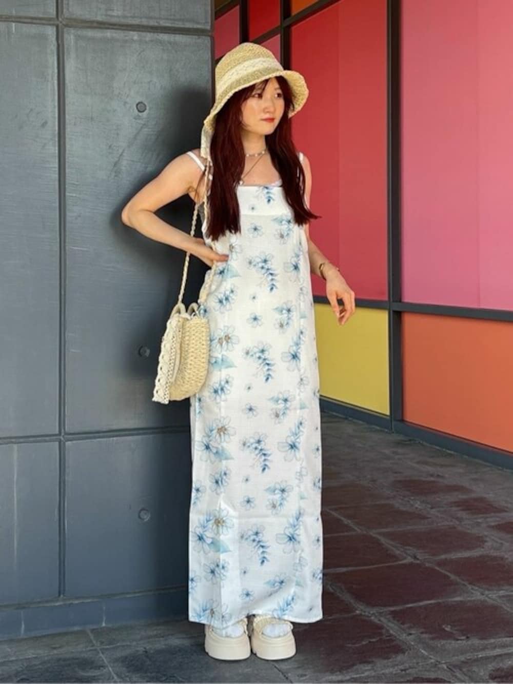 夏のお出かけスタイルです!🌻 生地がサラッとしているので気温が高い日でも涼しげに着れます◎