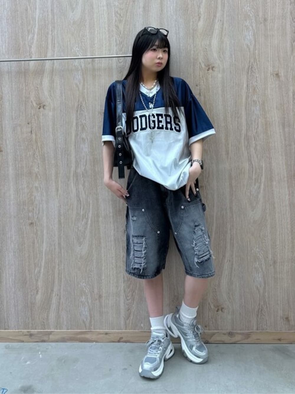 海外ガール風ストリートコーデ\★/ サテン生地のユニフォームTにジャラジャラのアクセサリーで海外ガールを演出してみました🇺🇸❤️