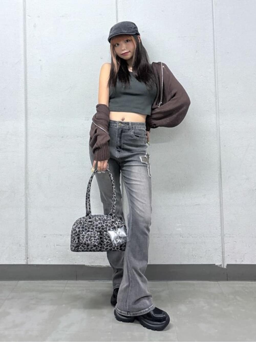 スタッズのクロスデザインがかわいいフレアパンツ!スタイル良く見える❣️