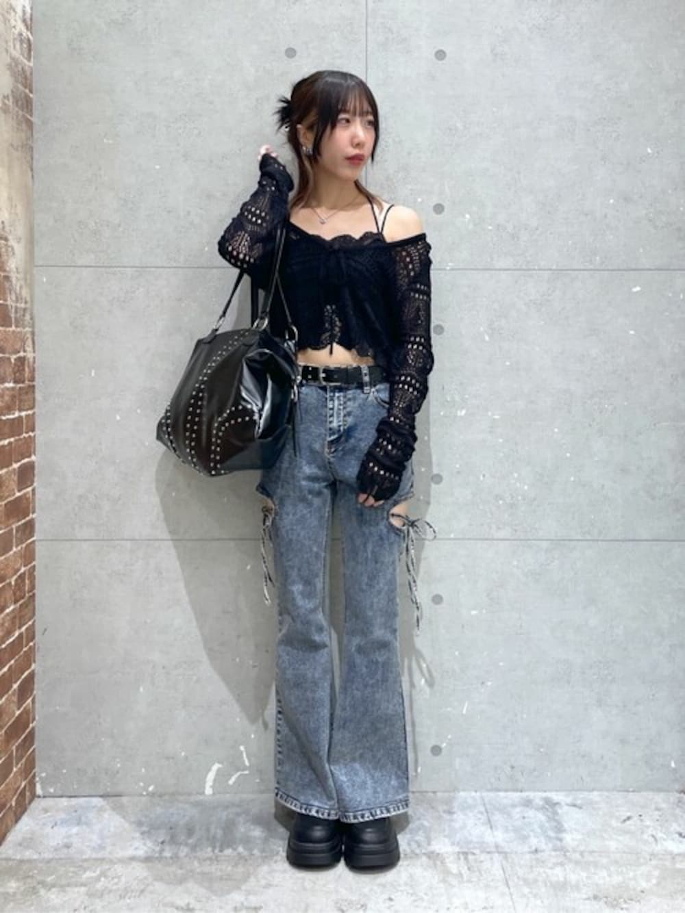 大人っぽギャルコーデ🤍 デザインフレアパンツが可愛さも出してくれるので、カジュアルガーリー感もでて一石二鳥🐓✋
