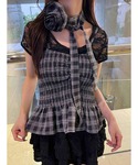 WEGO(WEGO STAFF)のチューブトップ「《2点セット》ローズチョーカーセットチェックベアトップ」を使ったコーディネート