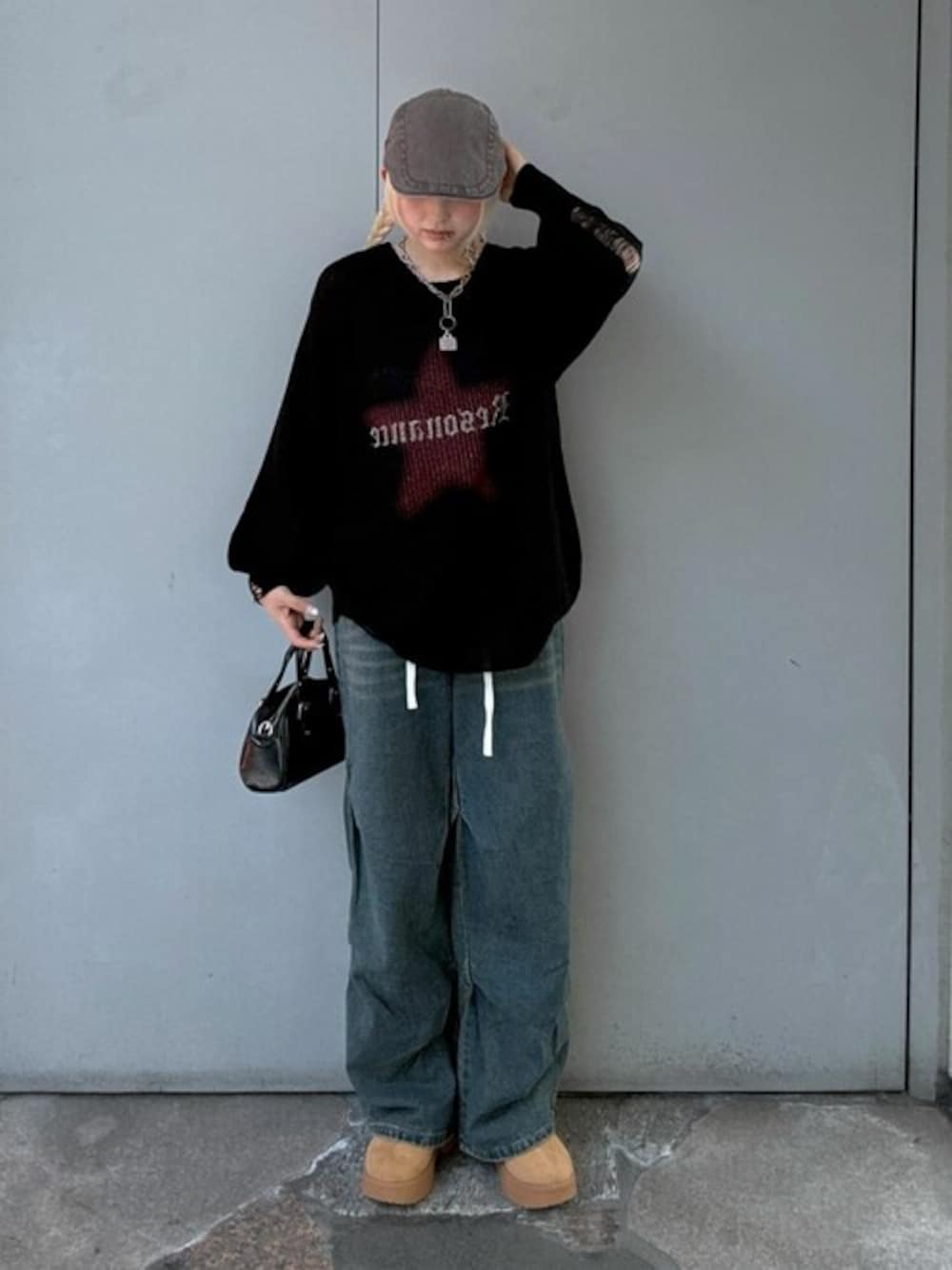 WEGO(WEGO STAFF)のニット/セーター「WEGO/モヘアタッチスターBIGニット」を使ったコーディネート