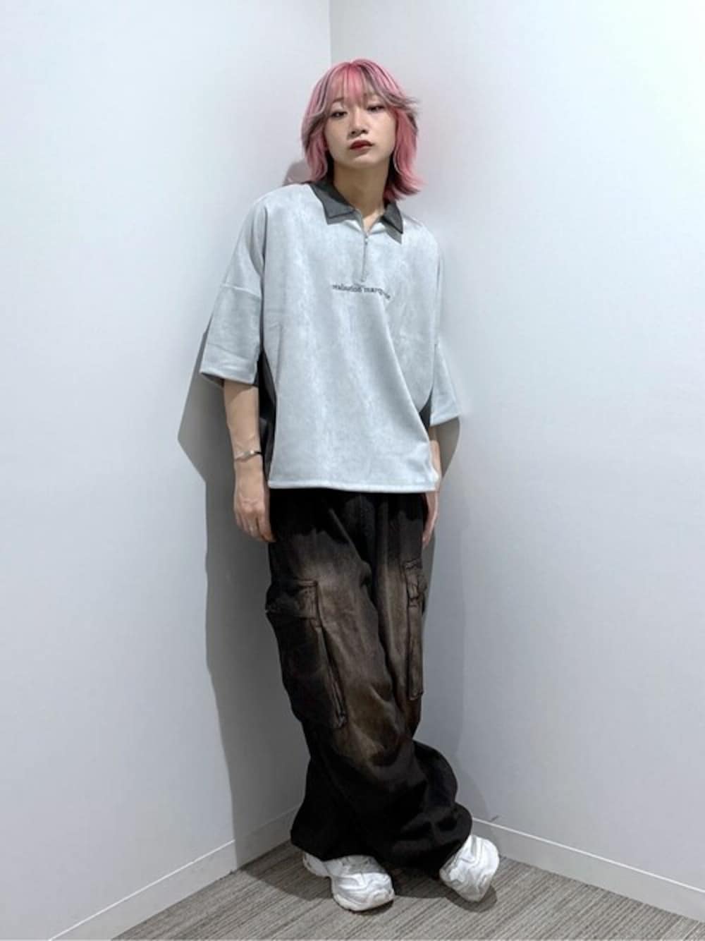 WEGO(WEGO STAFF)のTシャツ/カットソー「BROWNY/【25年秋冬新作】フェイクスウェードドルマンハーフZIPT」を使ったコーディネート