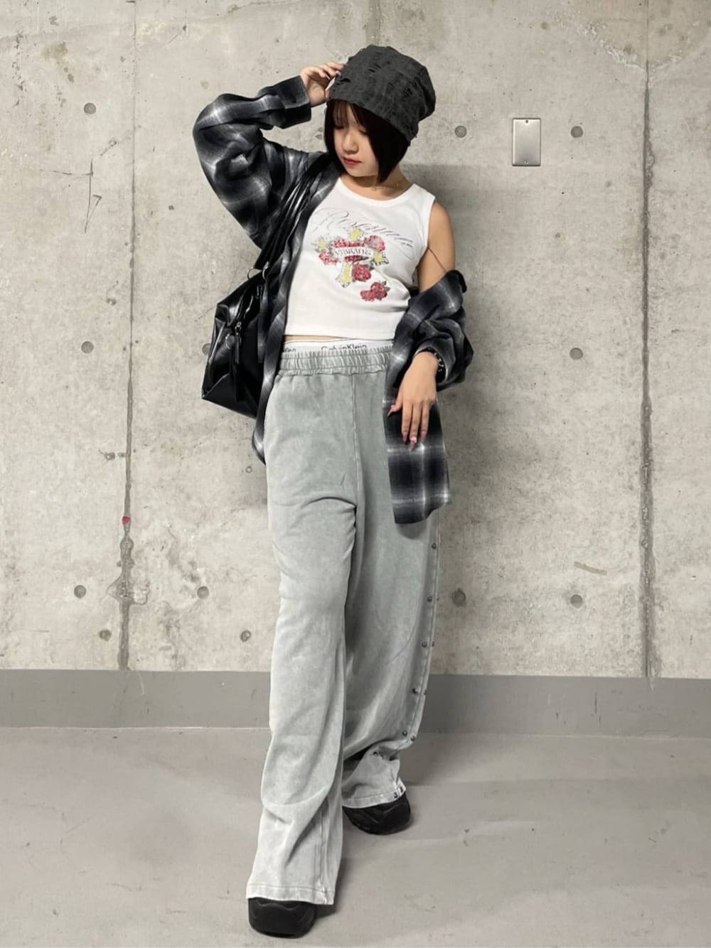 .*・゚オンブレチェックシャツ×スウェットパンツの欲張りコーデ.゚・*.