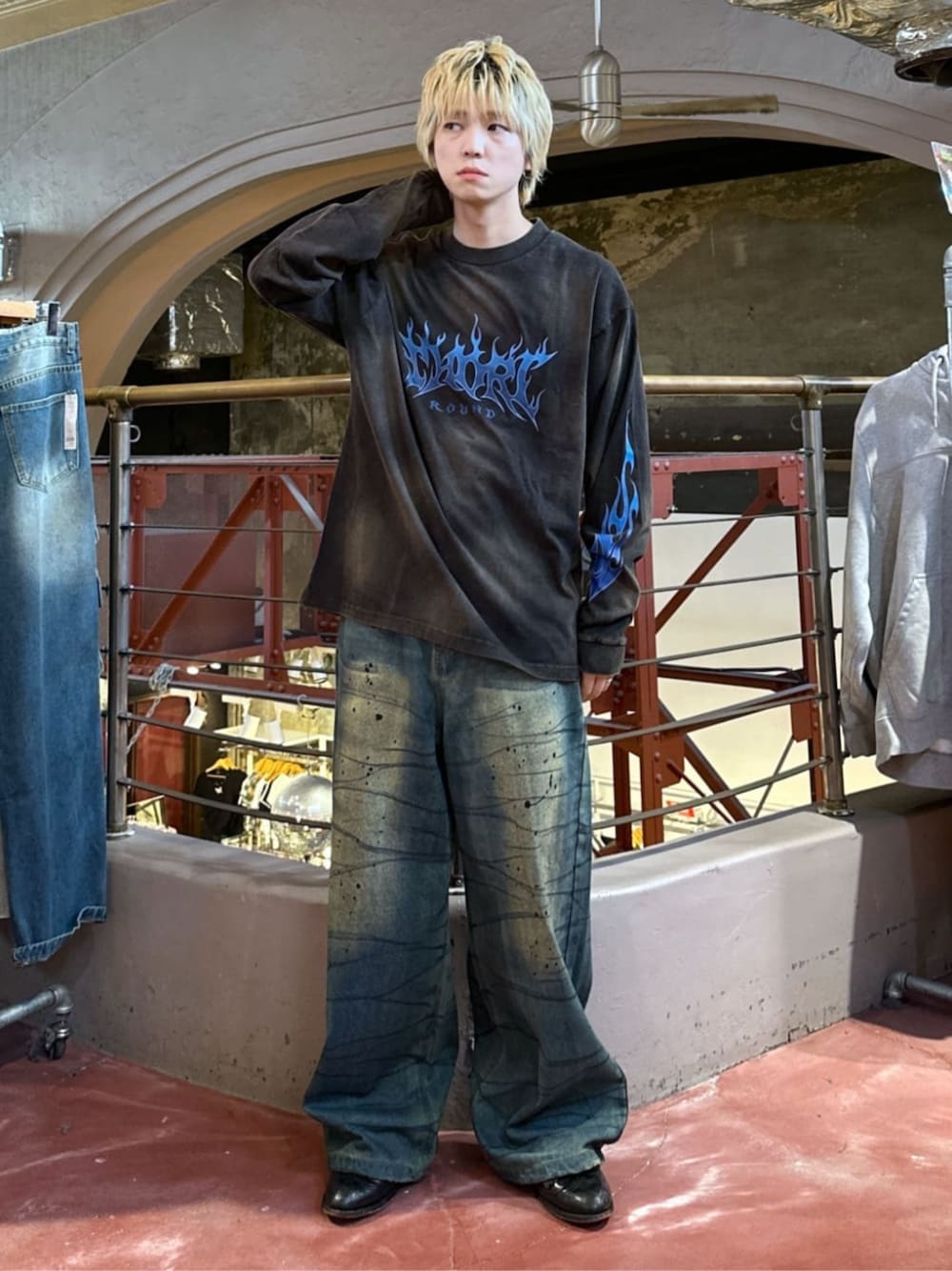 WEGO(WEGO STAFF)のデニムパンツ「SHORT ROUND/スーパーバギーダーティデニムパンツ」を使ったコーディネート