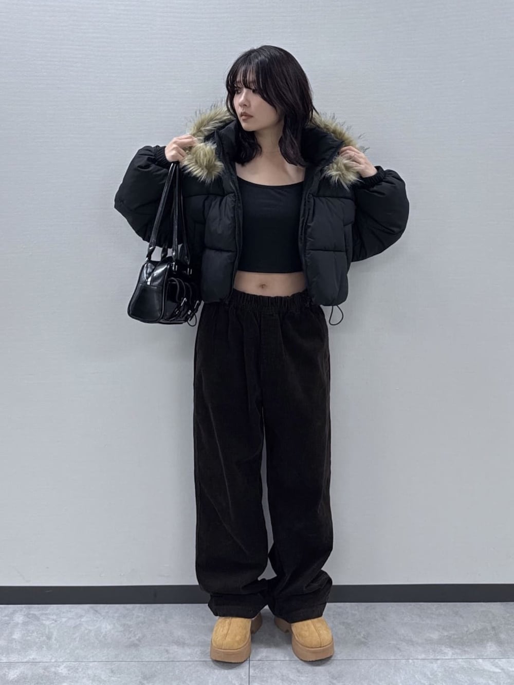 152センチ アウター/Sサイズ ボトムス/Lサイズ フードのファーが存在感◎ 取り外しも可能なので着回し力抜群です! ショート丈なので低身長さんもスタイルアップ! 裾が絞れるので好きなシルエットに変えられます!