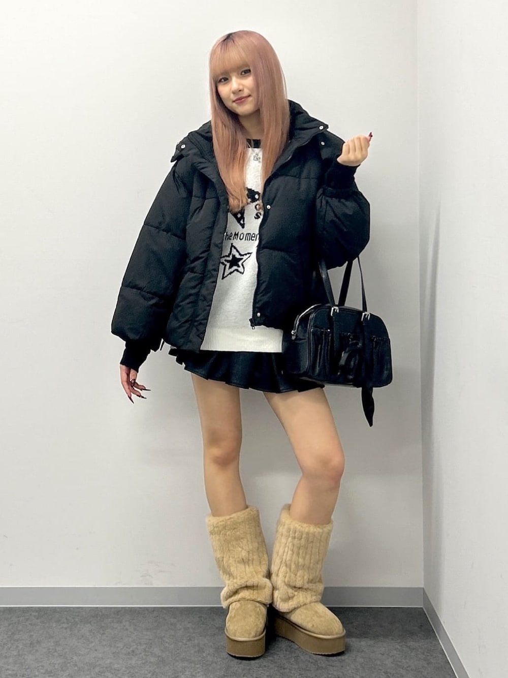 トップスはどちらもFサイズ! ニットは全体的にダボッとしていて丈感は腰下くらいで、袖丈は萌え袖が出来るようになってます!分厚め生地であったかい🧡 アウターは裏地がナイロンになってるから風を通さずあったかい🧡丈感はおしりくらいで袖丈は手首が隠れるくらいになってます👍🏻 スカートはFサイズ着用! 169cm骨格ナチュラルでも長すぎず短すぎずちょーどいい丈感です😽ウエストはゴムなので履きやすくなってます! 靴はいてるサイズ着用です!