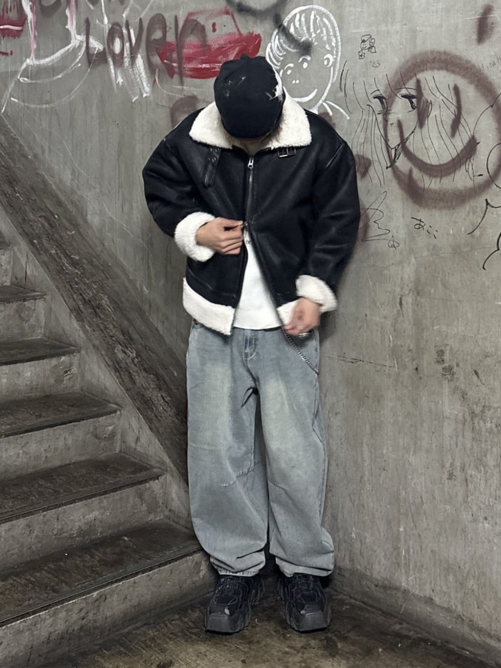 WEGO(WEGO STAFF)のデニムパンツ「WEGO/チェーン付きバルーンデニムパンツ」を使ったコーディネート