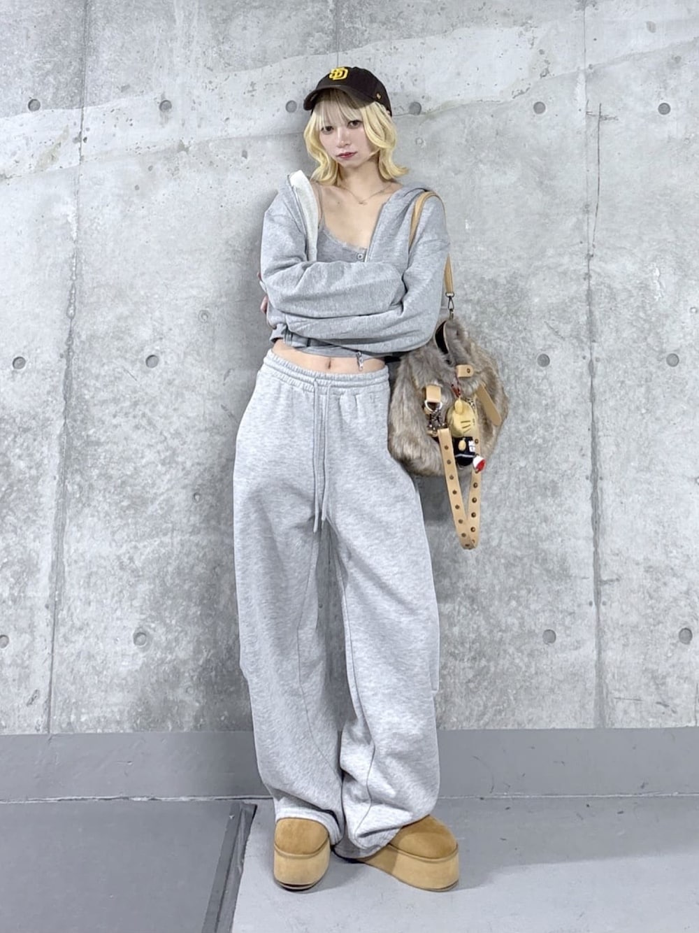 今日はグレーのセットアップにキャメルカラーを差し色にしたギャルコーデを組んでみました ~♡ 《tops》 今年もショートパーカーが可愛い ~! それぞれ単品でも着回し力抜群で、トップスをピタッとしたロンTに変えるとY2Kスタイルに! ボトムスをカーゴパンツに変えるとストリートに!同じ素材のミニスカと合わせてトレンドガーリーコーデに! などなど沢山着回せちゃいます◎ 私はセットアップ大好き民なのでこういうのすぐ手にとってしまいます^^ フードを被っても温かく写真映えしておすすめです★ 《bottom》 パンツはダボっとしつつウエストはしっかりしまっているタイプなので、キュッとスタイルアップしてくれちゃいます◎ ローライズで履きこなすと、ギャルっぽく着こなせちゃいます♡ しかも!!!! なんと裏起毛~♥暖かすぎる(;;)⭐︎ スウェットパンツはサラッと履けるのにトップスを選ばずに合わせられるのが最高すぎるーーー★ ガーリー系のブラウスと合わせても韓国コーデっぽく着回しできちゃいます♥ ただのスウェットパンツではなくカーブデザインになっていて、下に行くにつれてフワッとしている形なので細見え効果大優勝案件です〜(;;) あったかオシャレで寒い日も乗り換えちゃいましょ〜♡ 是非参考にしてみてください〜!!★