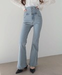 151cm/骨格ストレート ︎︎︎︎︎︎☑︎トップス/Fサイズ ︎︎︎︎︎︎☑︎ボトムス/Sサイズ ︎︎︎︎︎︎☑︎ワンピース/Fサイズ 大人気のフレアデニム⸜🌷︎⸝ ストレッチデニム生地で伸縮性あり着心地◎ ハイウエストでスタイルUPも叶います🫶🏻💕︎︎