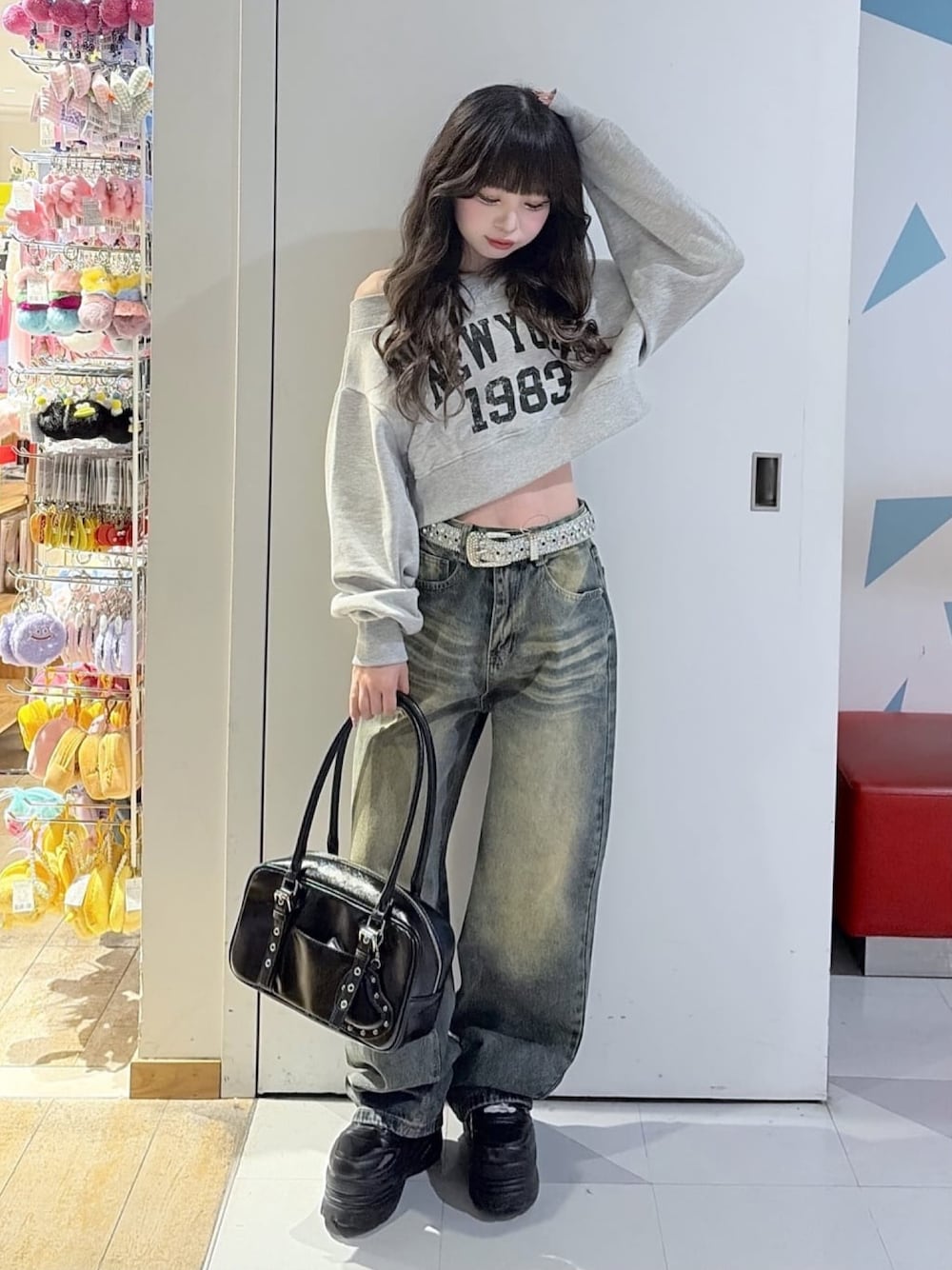 オフショルショートスウェット♡ さりげなく肌見せもできてスタイルアップも!✨ デニムやパンツスタイルにおすすめです🖤🎶
