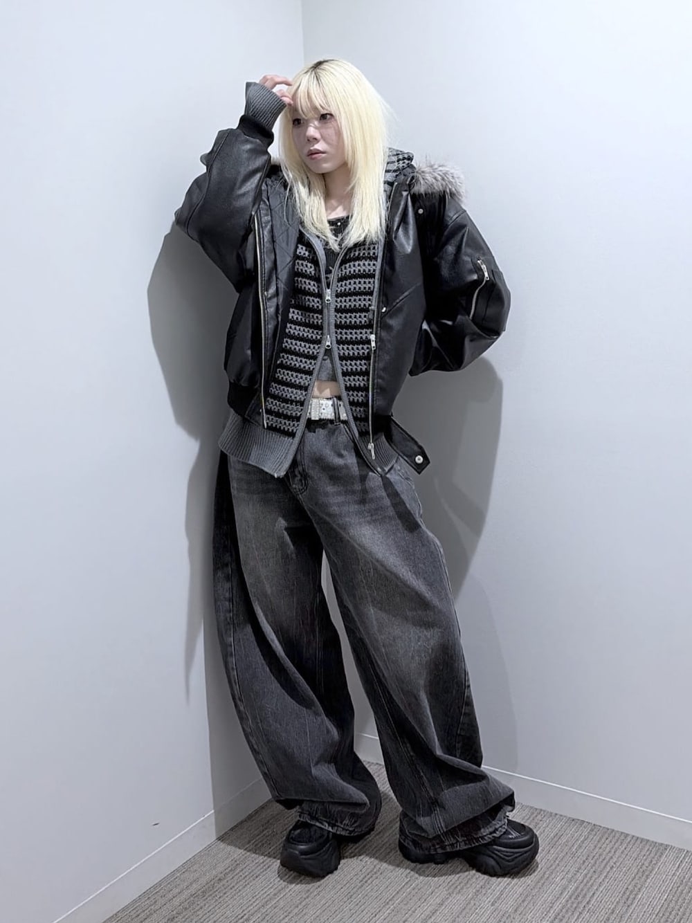 洗練されたストリートスタイルを追求する方に最適なN-2B合皮ジャケットと厚底スニーカーのコンビネーションが登場。 フェイクファー付きのファージャケットは、冬の暖かさと高級感を両立し、韓国ストリートコーデやレイヤードコーデにぴったり。 厚底スニーカーはボリューム感があり、身長を高く見せながらも快適な履き心地を実現。 ラインストーンbackロゴデニムやスタッズグラフィックタンクとの組み合わせで、個性あふれるストリートファッションを完成させます。 どんなアイテムとも相性抜群のN-2Bとスニーカーは、韓国風のトレンド感と日本の最先端を融合。 アウターとしての存在感と、レイヤードコーデのアクセントに最適です。 都会的でクールな印象を叶えながらも、機能性とデザイン性を兼ね備えたアイテム群は、周囲と差をつける一着に。 高身長の方も満足できる存在感と、ストリートシーンの必須アイテムとして、あなたの個性をさらに引き立てます。 今季のトレンドを押さえた、スタイリッシュかつ実用的なコーディネートをこの機会に手に入れませんか?