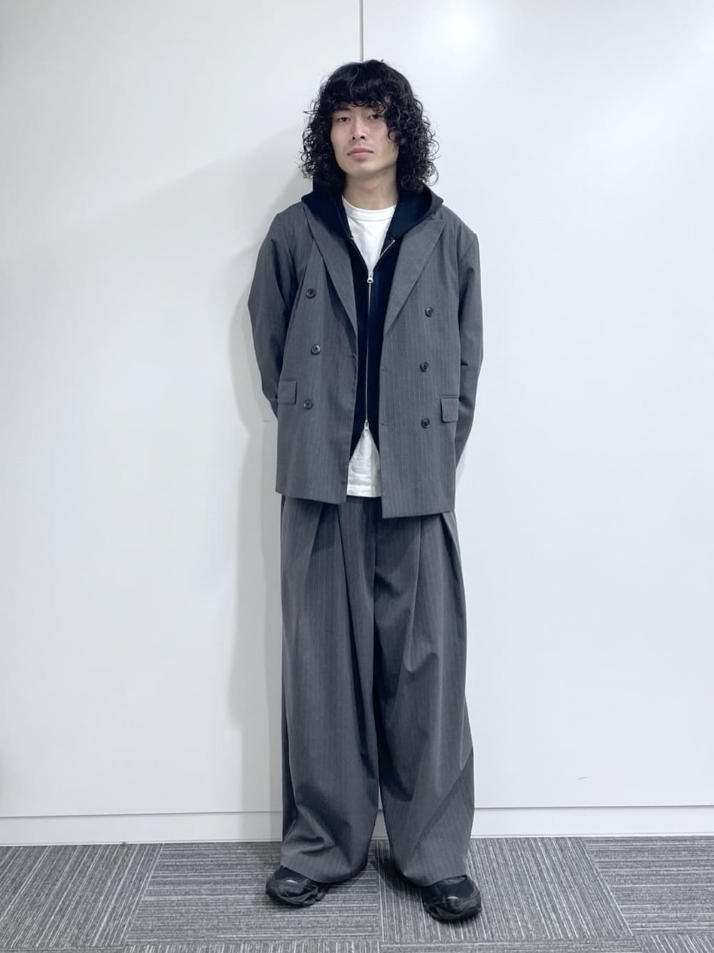 175cm細身で全身Lサイズ着用! アウター、スウェットはどちらもBIGシルエット仕様! アウターは身幅、丈感共に大きめで、尻が少し隠れるくらいの長さとなっております! スウェットは身幅広め、丈感はやや短めで、尻が少し隠れるくらいの長さとなっております! ボトムスはワイド感のあるバギーストレートシルエット! 丈感は靴に少しかかるくらいの長さとなっております!