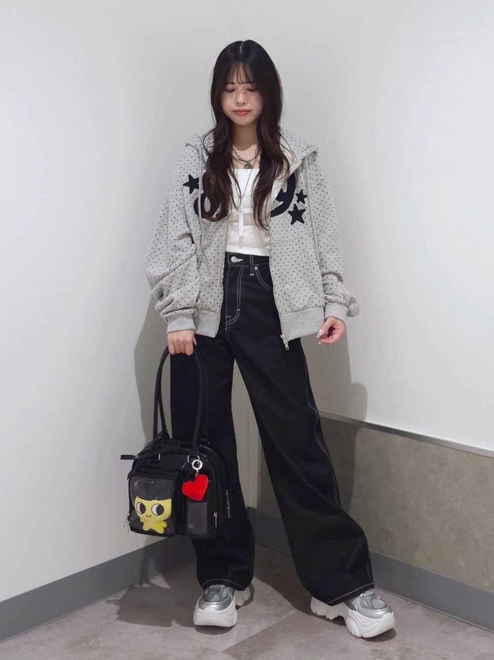 グラフィックZIPパーカーはトップスとして そのまま着るのもありだけど 羽織できるのも可愛い! インナーにキャミソールやカットソーを着てねദി_ .̫ _ᐡ꒱➰🎶 ストレートデニムパンツはダボッと履きたい人はいつものワンサイズ上がオススメ✨