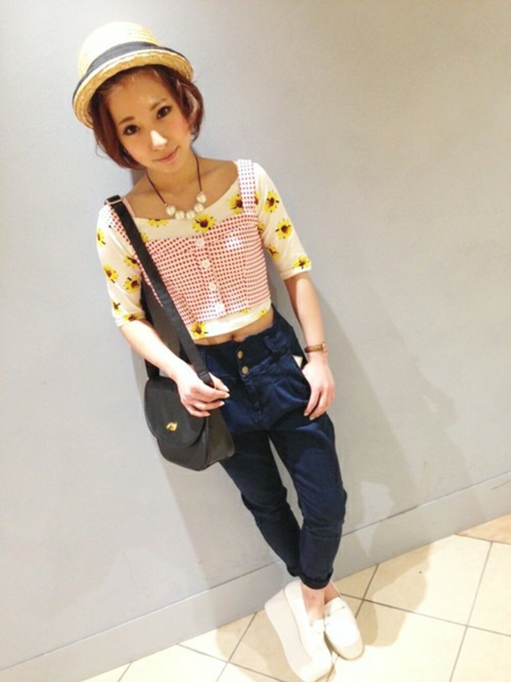 WEGO(WEGO STAFF)のTシャツ/カットソー「WEGO/フラワーオフショルダー5分袖Tシャツ」を使ったコーディネート