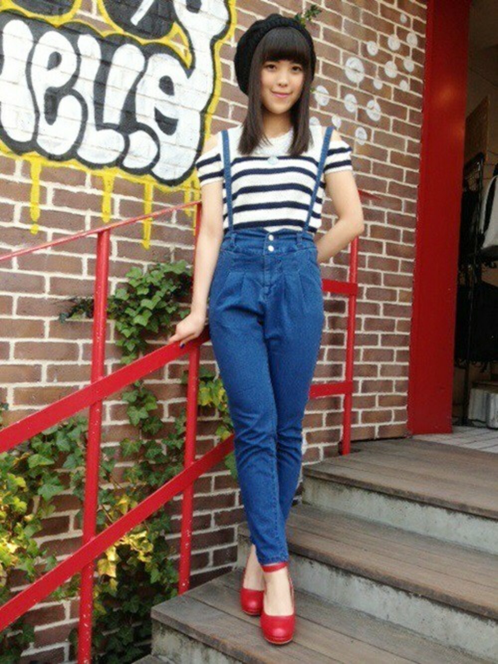 WEGO(WEGO STAFF)のデニムパンツ「WEGO/サスペンダー付ハイウエストタックパンツ」を使ったコーディネート
