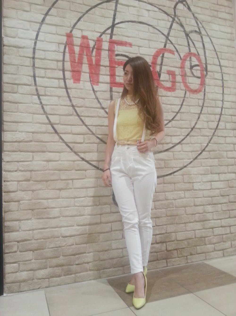 WEGO(WEGO STAFF)のデニムパンツ「WEGO/サスペンダー付きハイウエストタックパンツ」を使ったコーディネート