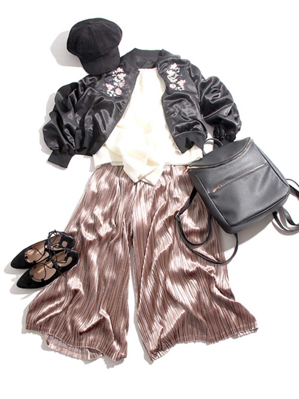 今回は【サテン刺繍リバーシブルブルゾン】を使った春コーデをご紹介◎ ベーシックなシルエットに刺繍をあしらったブルゾンは合わせやすさ抜群!リバーシブルなので、ボトムスやトップスのデザイン、テイストに合わせて変えることもできる万能アイテムです★定番カラーのブラックは、ベージュやワイン、ピンクなど合わせるものを悩んでしまうカラーとの相性抜群です◎ブラックとピンクの2色でのご用意となっています♪ ぜひ、この機会にご覧ください!