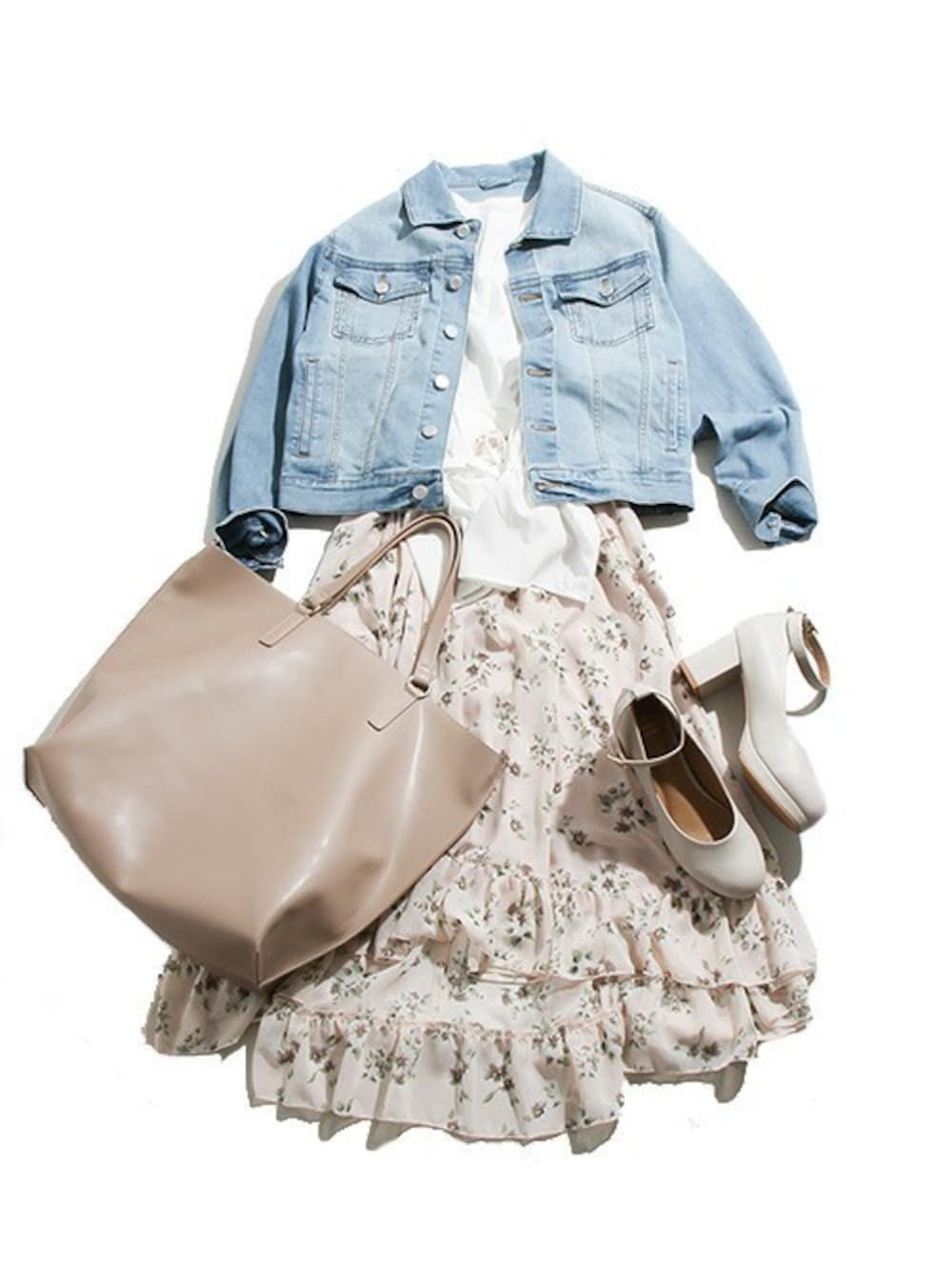 今回は【ライクラデニムGジャン】を使った春コーデをご紹介◎ 程よいサイズ感で、スカートやワイドパンツなどアイテムを選ばずお使いできます♪淡い色でまとめることで、春らしさを演出★歩くたびにゆらゆらと揺れるヘムラインスカートはフェミニンさをさらにプラスしてくれるひと品です。ライクラデニムGジャンは全三色でのご用意となっているので、ぜひ、この機会にチェックしてみてください◎
