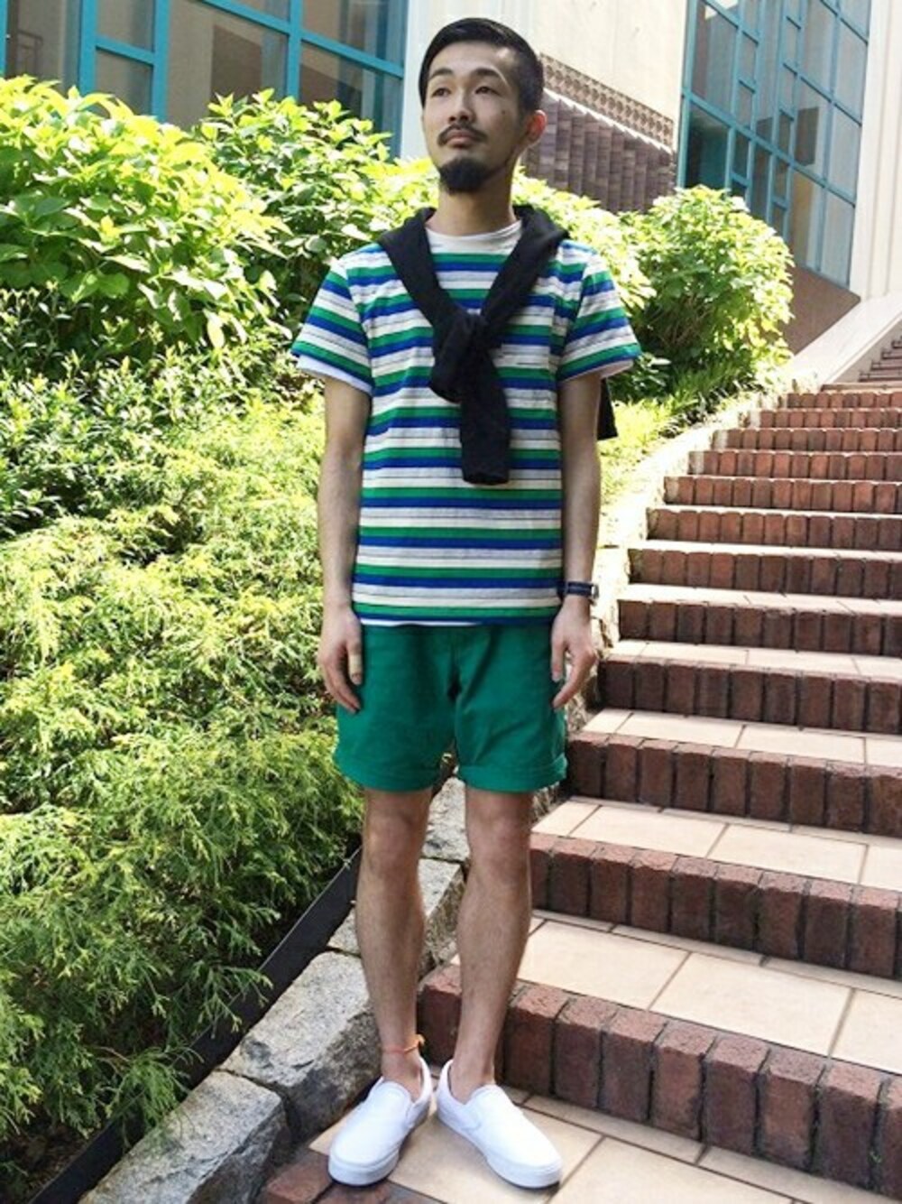 WEGO(WEGO STAFF)のTシャツ/カットソー「WEGO/綿麻マルチボーダー半袖Tシャツ」を使ったコーディネート