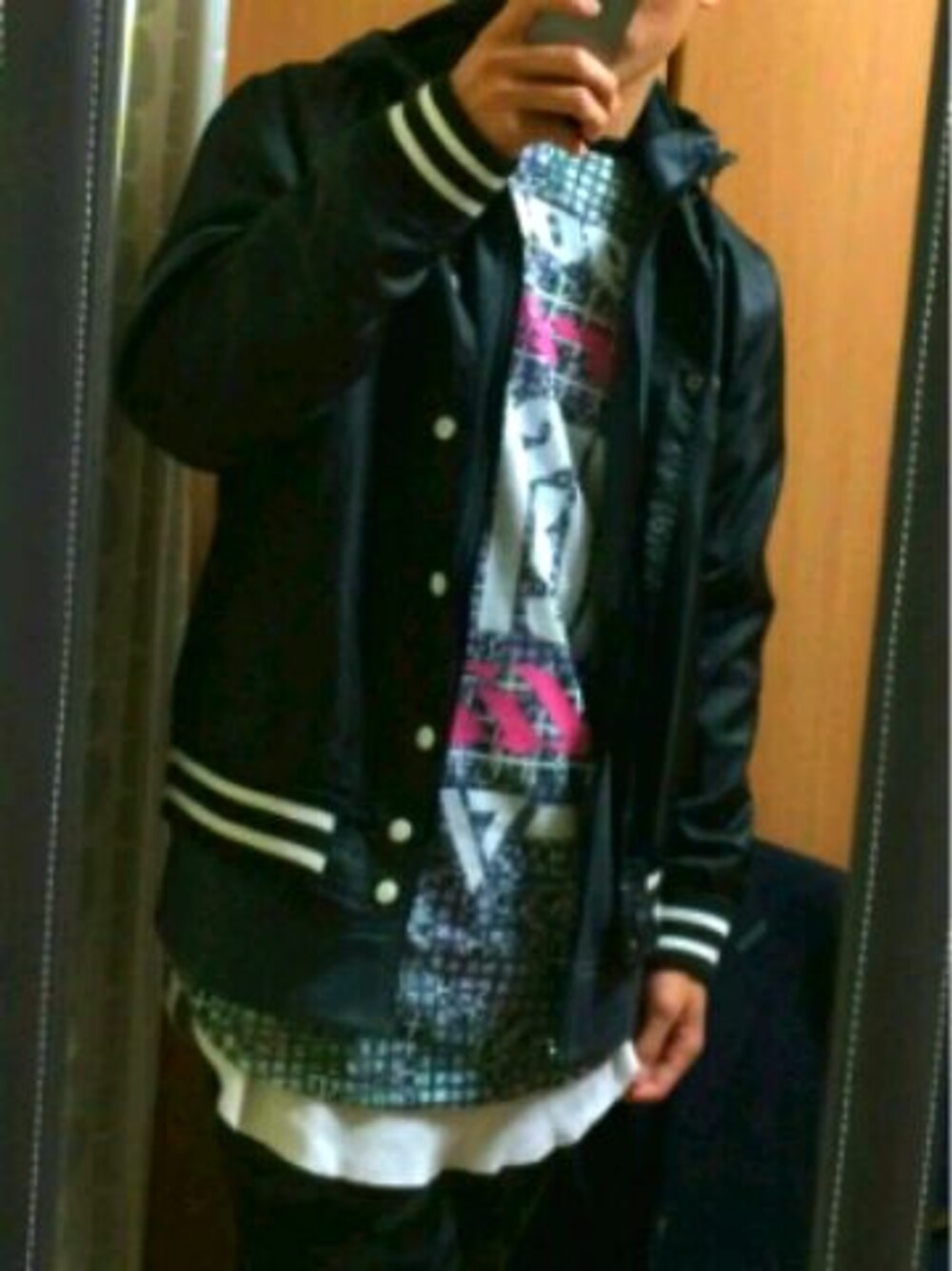 中のTシャツが派手めなので、アウターとズボンを黒にして、シンプルさと派手さを中和させてみました! そしてレイアウトで使ってるTシャツが白なのでモノトーンもしています! 初めて派手めとシンプルさを混ぜたのであんまりうまくはないです!