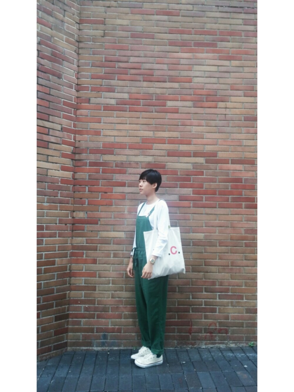 top:COS overall:buy from Taiwan shoes:converse tote bag:A.P.C