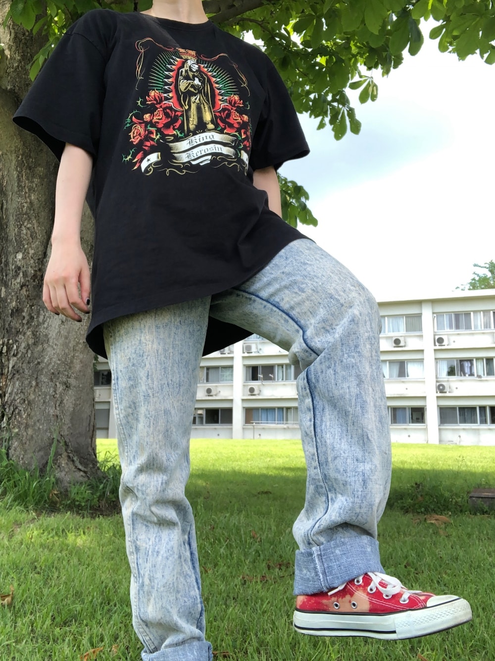 こんにちは☼ めっちゃ天気いいので!外で撮ってきました!通行人いて恥ずかったけど気にしない! コンバースは自分でリメイクしてみました!めっちゃめちゃお気に入り。古着屋さんで買った服に合うったらない()満足。
