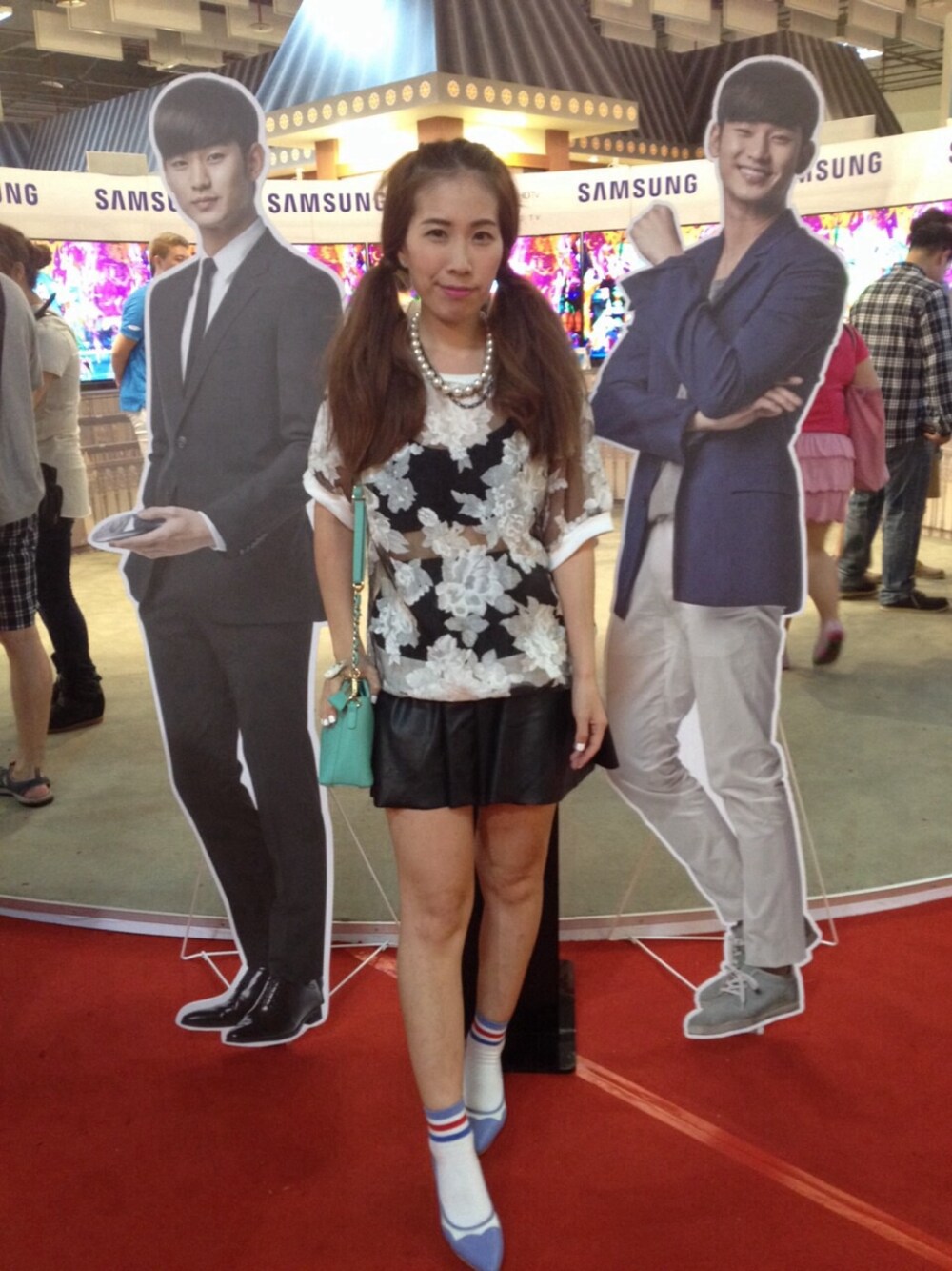 碎花透紗上衣:boho chic 皮革小圓裙:boho chic 橫條短襪:boho chic 透紗紫色尖頭鞋:品牌不詳