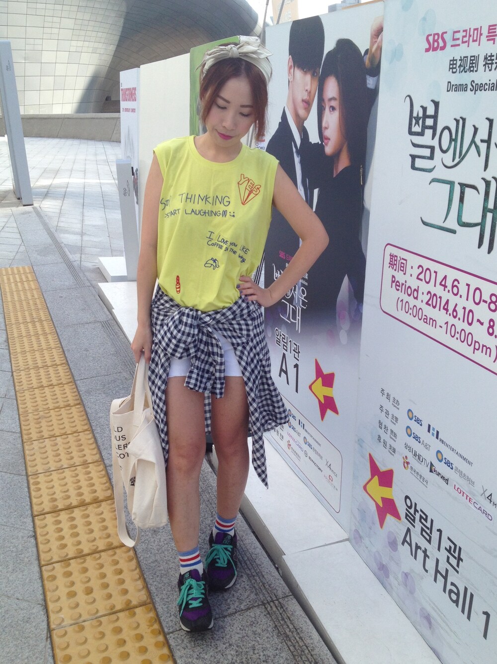 髮帶:boho chic Yes刺繡無袖T:boho chic 牛仔短褲:boho chic 短襪:boho chic 鞋:new balance 環保袋:boho chic