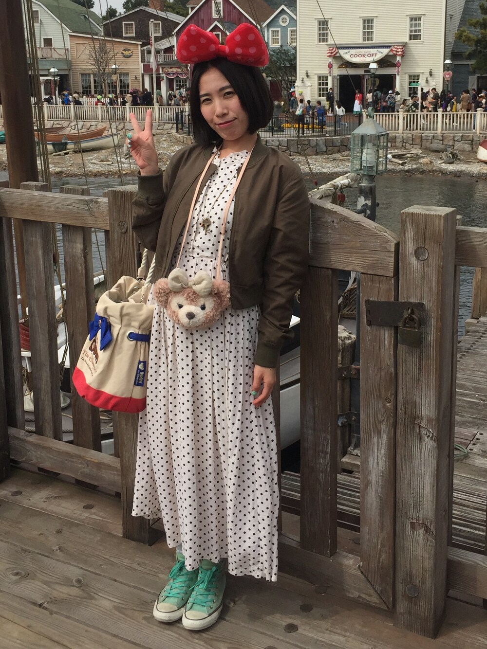 外套:dazzlin 長洋裝:boho chic 鞋:converse 包:Disney