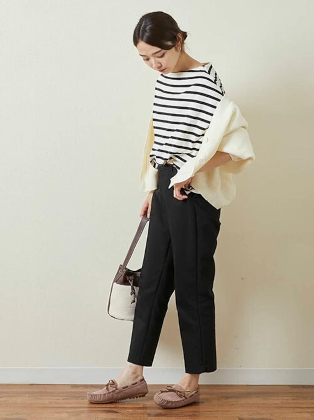 kyonのモカシン/デッキシューズ「フェイクファーリボン甲深モカシン」を使ったコーディネート