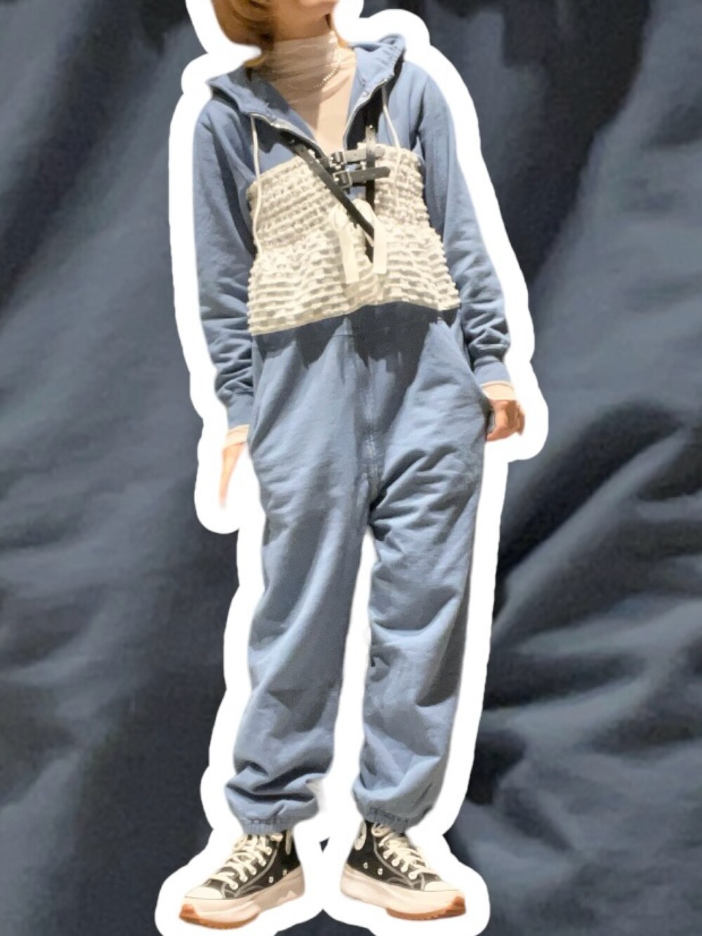 Good Onフリースフードスーツ 裏起毛で楽ちんあったか♡ メンズっぽさがあるので、ハーネス風ビスチェで女子感を➕