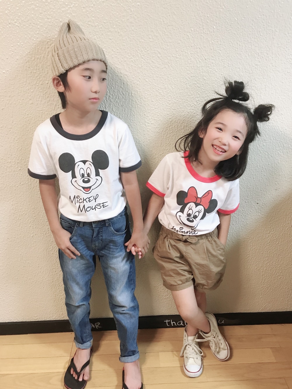 💚覗いていただきありがとうございます💚 可愛子ちゃん達が着ているGWのミッキー&ミニーのリンガーTウチも買ってましたよー😙👍✨ やっぱり、かわいい🙈💕 お気に入りのミニーちゃんTシャツに、お兄ちゃんも一緒♡で茶々嬉しそう😍💕 嬉しすぎて、そのままじゃれ合い♡ その様子は小窓にて…😋 いつも♡、お気に入り、フォローありがとうございます😊全部とても嬉しいです❤️
