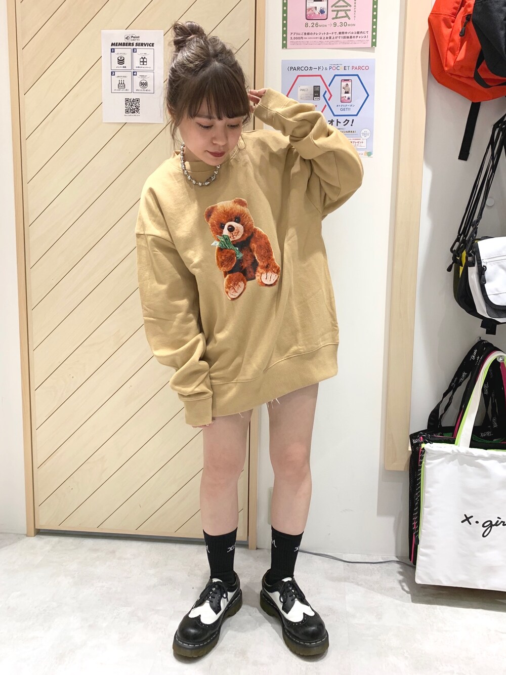 Fukuo Yuuka(X-girl大阪)のスウェット「X-girl x YURINO TEDDY BEAR CREW SWEAT TOP」を使ったコーディネート