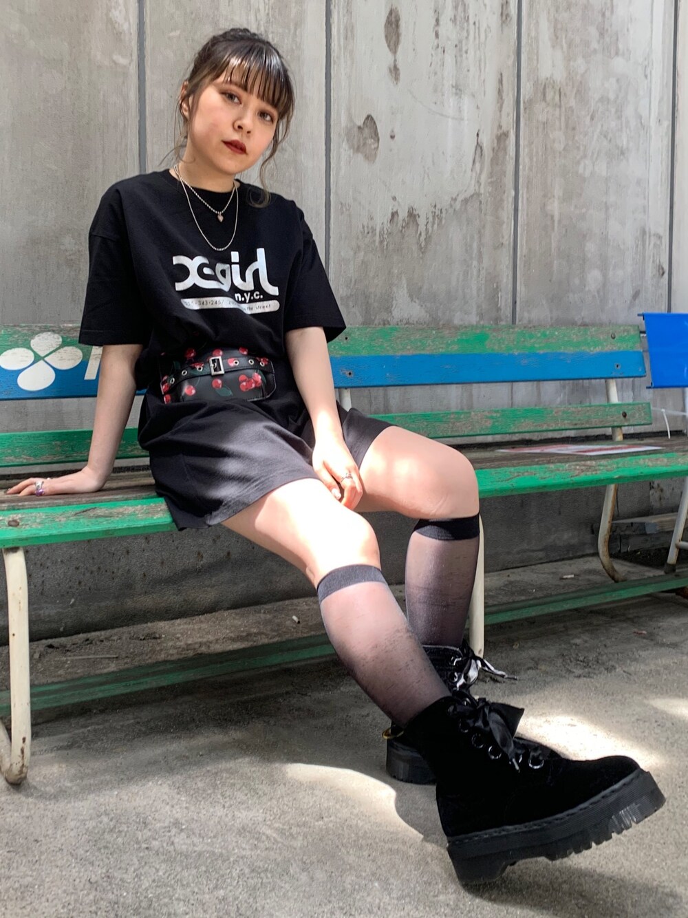Fukuo Yuuka(X-girl大阪)のワンピース「X-girl NYC S/S TEE DRESS」を使ったコーディネート