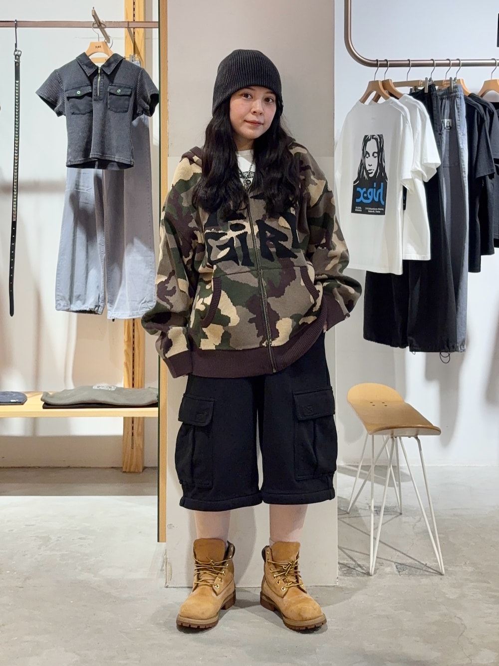 Fukuo Yuuka(X-girl大阪)のニットキャップ/ビーニー「FADED BEANIE」を使ったコーディネート