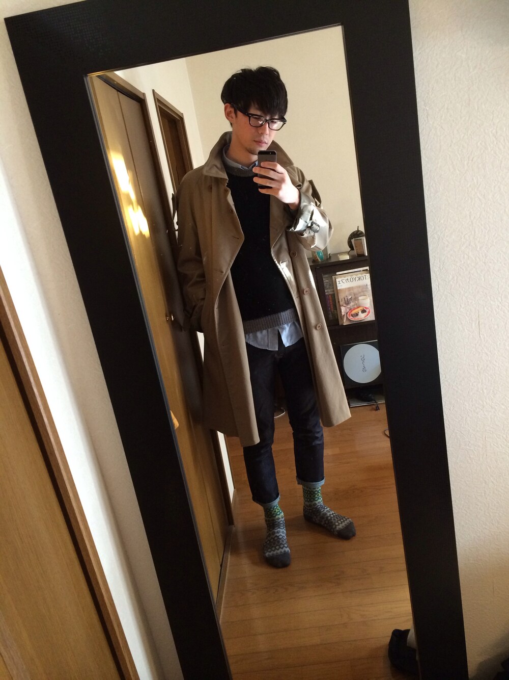 コート:COMME des GARÇONS HOMME PLUS ニット:ANREALAGE シャツ:DIOR パンツ:April77 靴下:ANREALAGE
