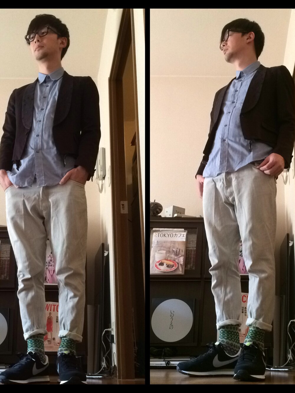 ジャケット:8年程前に買ったTSUMORI シャツ:DiorのUsed パンツ:10年程前に買ったFRAPBOIS 学生時代に良くしてたジャケットスタイル、、、学生時代が何年前かは内緒でござる