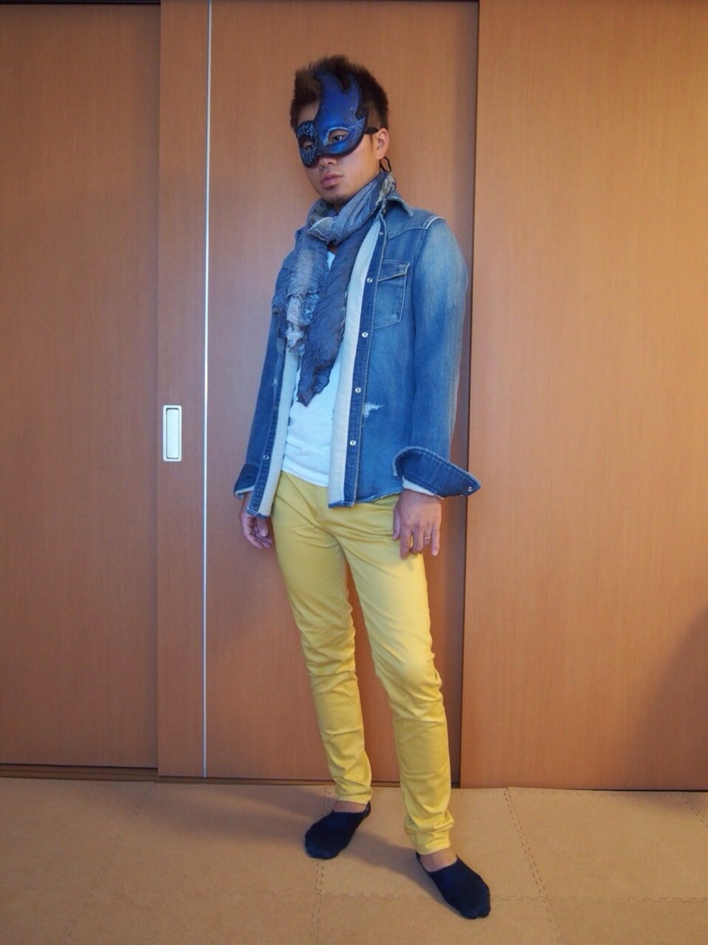 デニムジャケットにからし色のパンツでセッティング完了!!
