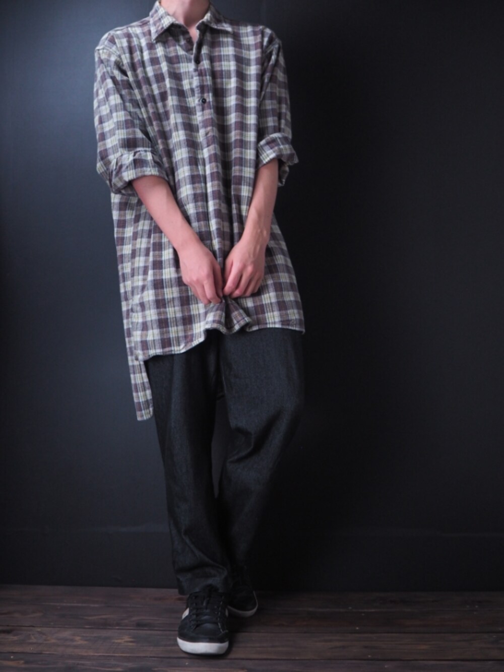いつもご覧いただきまして、ありがとうございます! 私生活が忙しく、しばらく投稿が止まっていましたが、今日からまた自分のペースで再開しようと思います。 よろしくお願いします!🙇 今回から背景を黒くしてみました。 見やすいようには工夫しましたがもう少しこうしてほしいなどあればコメントで教えていただければ幸いです! さて、今日は僕が最近ハマっているユーロヴィンテージ!グランパシャツを使ったコーデです。😆 グランパシャツはポロシャツみたいな胸までのボタンに着丈がめちゃ長いと言う特徴があります。 スモッグみたいな感じで丸くとてもかわいいシルエットの1枚です! アメ村で7000円くらいだったかな? 学生でも全然買える値段のヴィンテージですのでよければぜひ!☺️ 気に入っていただけたらいいね、お気に入り、フォローよろしくお願いします。