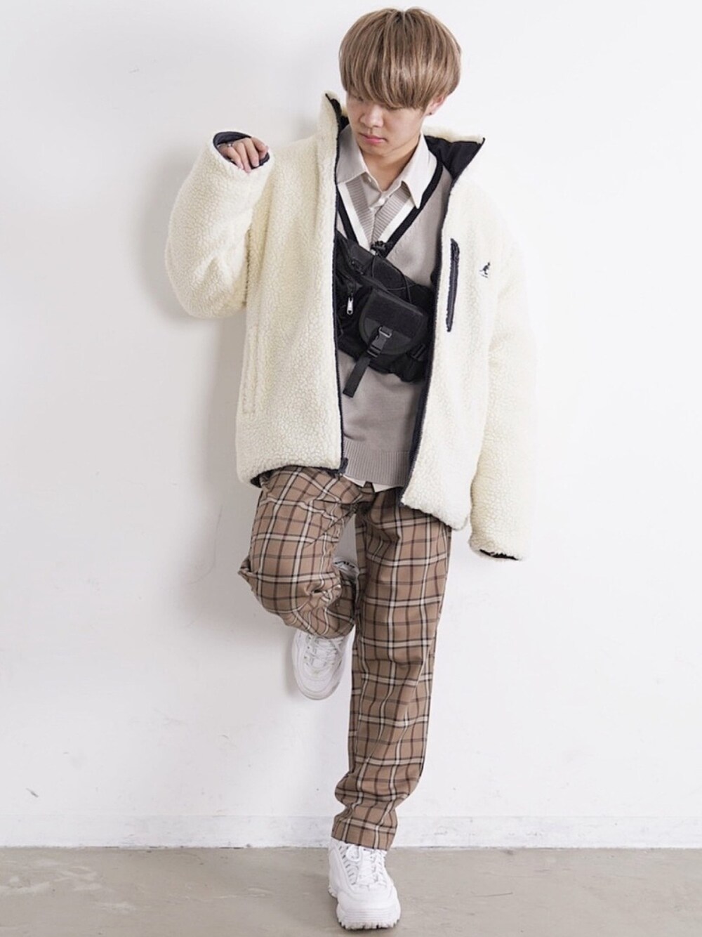 ゆーすけのブルゾン「KANGOL/カンゴール別注 オーバーサイズ シープボアフリースジャケット」を使ったコーディネート