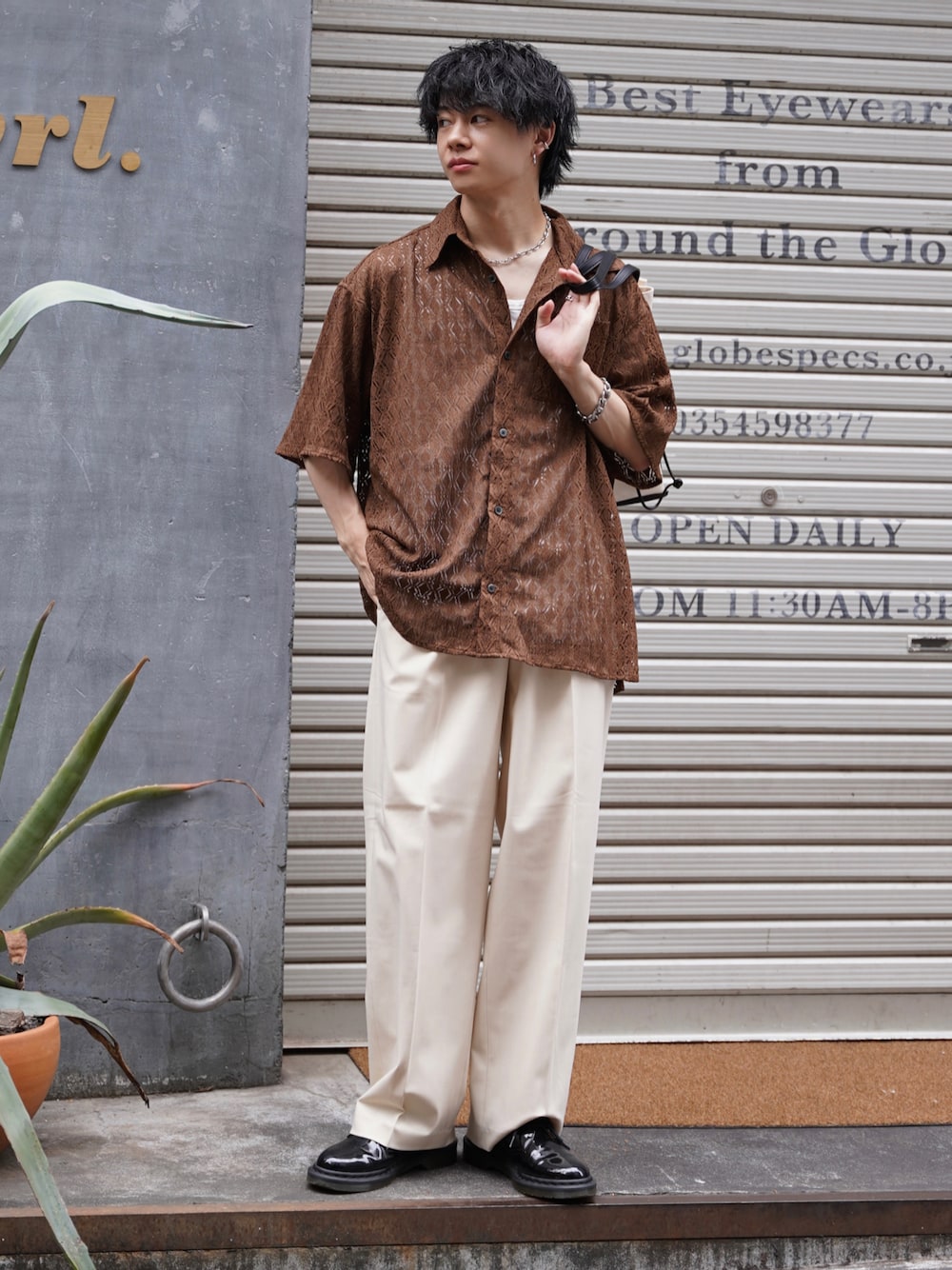 今年トレンドのスカシアミのシャツをUNIQLOのお気に入りタックワイドパンツ と合わせてみました! スカシアミシャツはタンクトップと 合わせれば色気も出せるし風通しも良い から暑がりの僕には嬉しいスタイル✨ 首元は少し空けてVラインを意識 しました◎