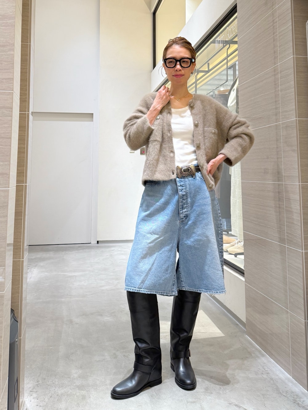 【ジャケット】普段サイズ7号/着用サイズF 毛並みツヤ良いファージャケット、1枚でも本当に暖かい。今年のジャケットはポケット位置を変更し、さらにアップデートしました。目線が上がりスタイルアップも叶う。今年らしい上品な色展開◎。ニット素材なので畳んでの保管がおすすめです。定期的なブラッシングでホコリをとるとさらに良いです。