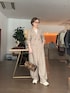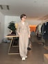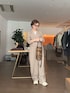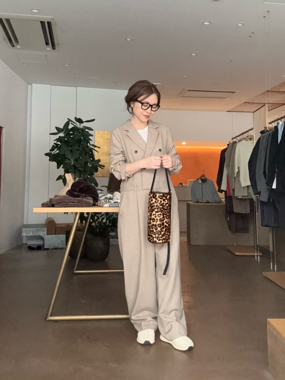 人気のジャンプスーツをスニーカーで。 【ジャンプスーツ】普段Mサイズ/フリーサイズ着用 着るだけでサマになるテーラーカラージャンプスーツ。スッキリとしたシルエットでスタイリッシュな印象を与えます。一見、メンズライクな雰囲気ですが、Vネックが女性らしいさをプラスしてくれます。 【カットソー】普段Mサイズ/38サイズ着用 滑らかで着心地最高。サラッとしているシアーアイテムなので、一枚でも抜け感が出ますが、ニットやジャケットのインナーとしても活躍する間違いなし。