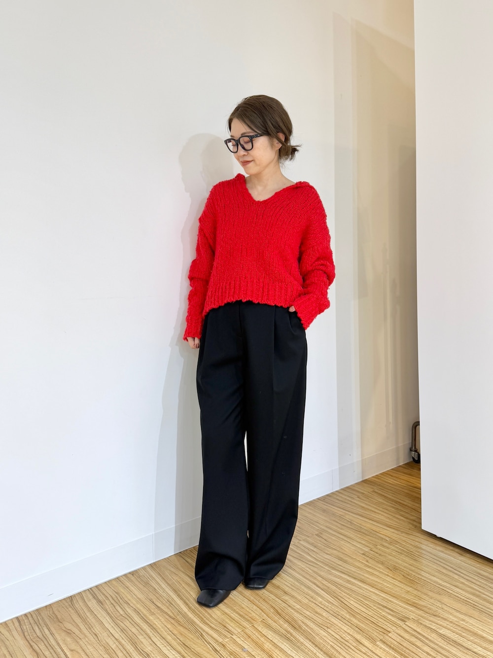 2025.11.06 インスタライブコーデ。 【ニット】普段Mサイズ/フリーサイズ着用 抜け感のでるローゲージスキッパーニット。デザイン性と素材感で、垢抜けた印象に。比較的短丈なので、ボリュームのあるボトムとのバランスが良いです。 【パンツ】普段38サイズ/Fサイズ着用 カマーベルト付きのとろみのあるパンツ。カマーベルトとは、タキシードなどの正装時に、ズボンのウエスト部分に巻く幅広のベルトのことです。ベストの代わりとして着用され、ウエストラインを高く見せ、すっきりとしたシルエットを演出する効果があります。 ヒダがある場合は、上向きになるように着用。体型カバーしながら、上品でスタイリッシュなパンツです。