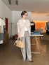 【カーディガン】普段Mサイズ/フリーサイズ着用 優しい質感のカーディガン。程よい丈感で着回し力抜群。薄すぎず、厚すぎず、ちょうど良いボリューム感です。 【カットソー】普段Mサイズ/フリーサイズ着用 使い勝手の良いカットソー。どんなスタイリングにも馴染み、一枚あると活躍間違いなし。肌のあたりも柔らかく、着心地が良いです。一枚ではもちろんのこと、ジャケット、カーディガン、ジレのインナーとしても使えます。リアルバイです。 【パンツ】普段38サイズ/38サイズ着用 とろみがあり、光沢もあり、上品なワイドパンツ。カットソーやニット、ジャケット合わせなど着回し力抜群。オンオフ活躍間違いなしのアイテムです。ワイドですが、とろみがあるので太く感じず、こなれて見えるシルエットです。私の身長ですと、裾カットが必要です。 【佐藤コラボ/ワイドボストンbag】 佐藤監修のボストンbag。ミニボストンが進化した横長のバッグです。収納力抜群。ショルダーが付いてますので斜めがけも可能。とにかく軽く、どんなコーディネートにもハマり、さり気なくオシャレさを主張してくれる優秀アイテムです。ジッパーを開けなくても、携帯が取り出せる便利な収納もございます。 【佐藤コラボ/イヤフォンケース(チャーム)】 チャームとして、バッグにつけられるAirPodsケース。レオパード柄がポイントに。つけたときに斜めなるチャームのバランスを計算し作りました。バッグだけでなく、パンツのベルトループにつけたり、アレンジもお楽しみください!飴など、おやつを入れても◎