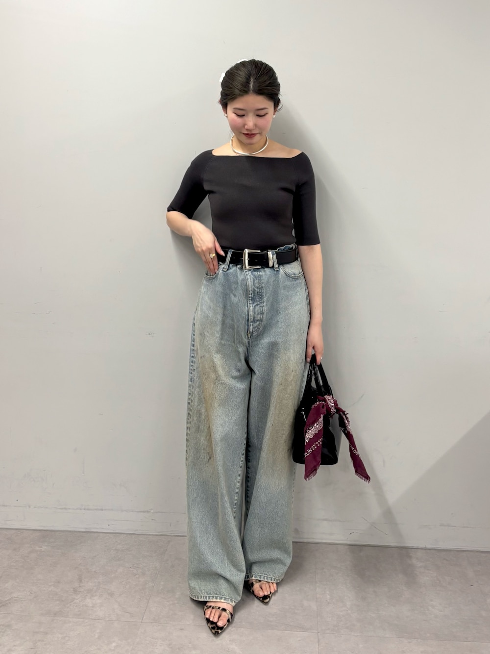 【トップス】着用サイズF 【THE PAUSE】のオフショルニット。 生地は柔らかくて着心地が良いです。 5分袖でしっかり二の腕をカバー。 首周りがスッキリして見えます! 【パンツ】着用サイズ38/普段サイズ34-36 【GEMINI】のダスティデニム。 ゆるっとしたオーバーサイズが素敵。 ヴィンテージライクなデザインがコーデに抜け感をプラス。 私はウエストはかなり大きく、ベルトで絞めて調節しています。