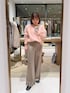 【ニット】着用Fサイズ/普段Sサイズ カシミヤ混でとても軽く暖かいニット。 肌に直接着用してもチクチクせず、肌あたりが優しいのが◎。 ヒップにかかる程よい着丈でボトムスを選ばないのが嬉しいポイント。 【パンツ】着用36サイズ/普段36サイズ 上質なサテン素材の大人のとろみパンツ。 ヴィンテージライクでお洒落見えが叶うだけでなく、見た目以上にしっかりとした素材で腰や脚のラインを拾いにくいです。