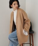 Ibaragi Hazuki(Whim Gazette)のノーカラーコート「ダブルビーバーミドルコート」を使ったコーディネート
